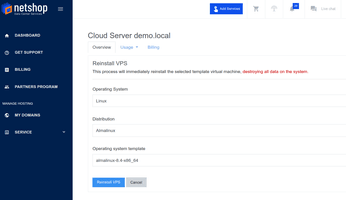 If you already have an Operating System installed on your Cloud VPS server, you can easily replace it from within myNetShop Self-service Portal.