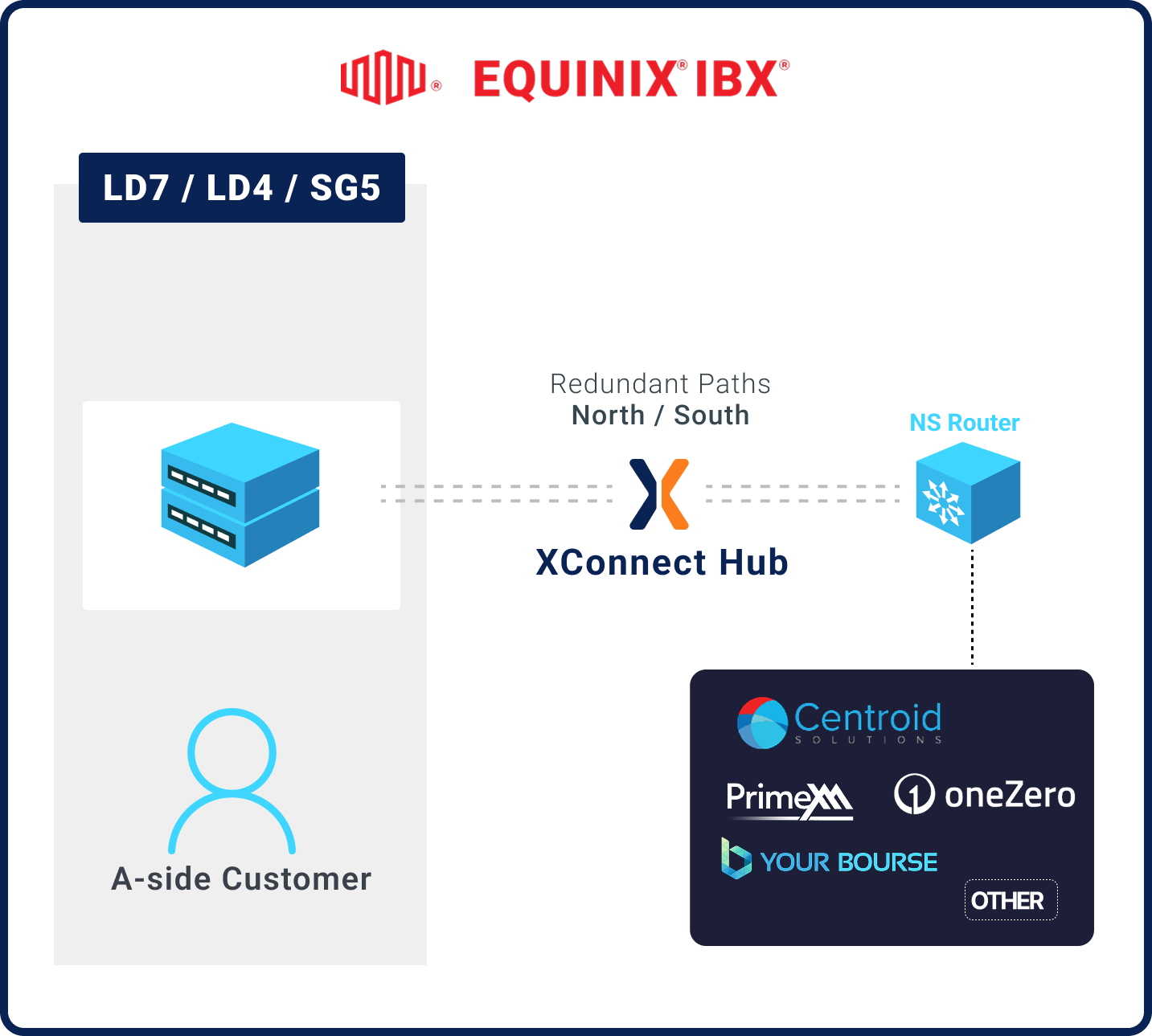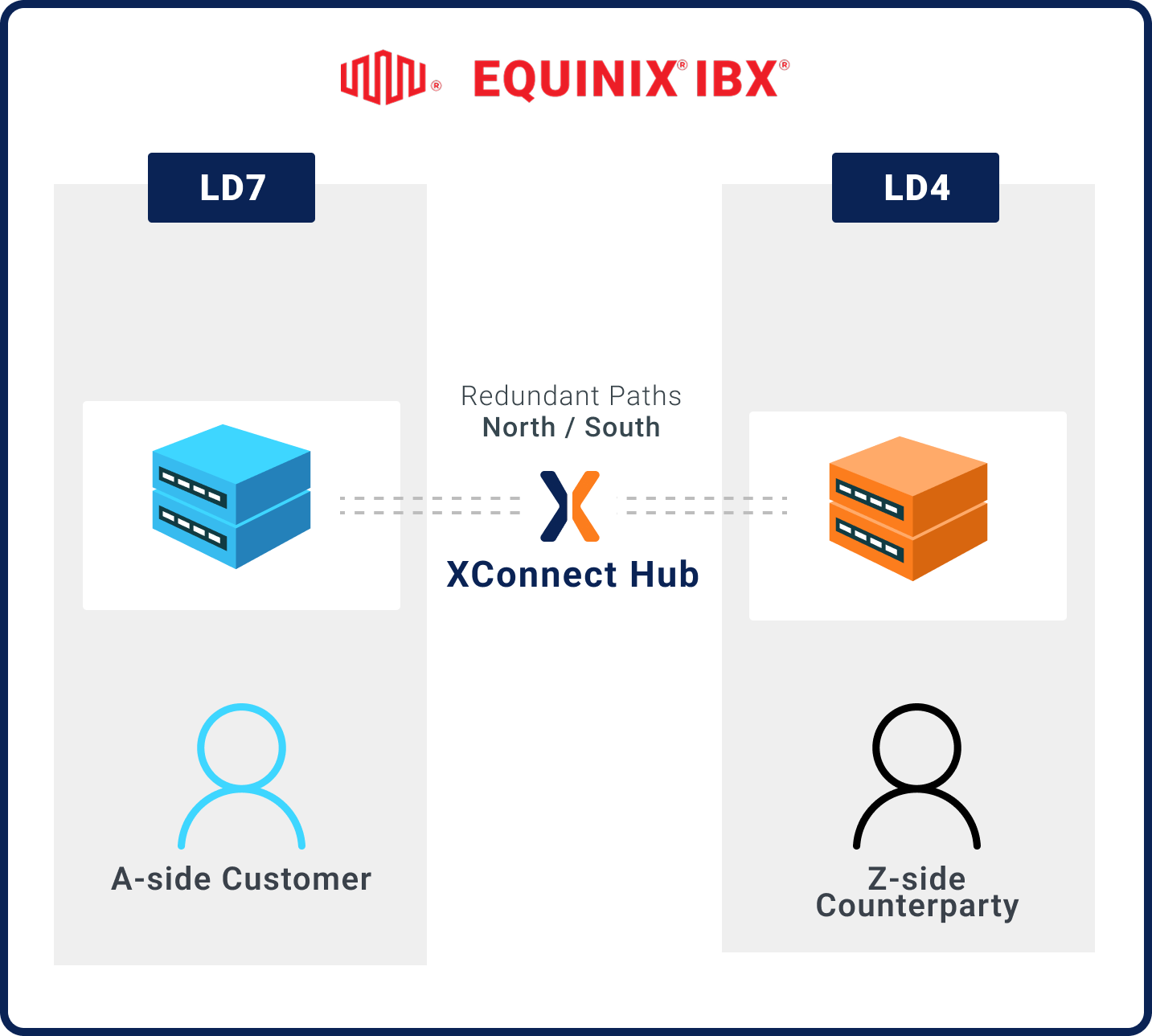 Metro Dedicated XConnect provides dedicated, physical point-to-point connections between data centers or providers within the same metro region—for example, London LD4 ↔ LD4 or even London LD4 ↔ LD7.